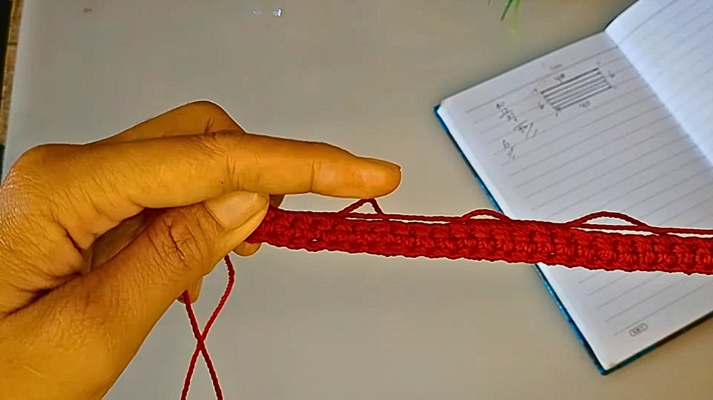 - Work SC stitches back and forth until the strap reaches the desired length.