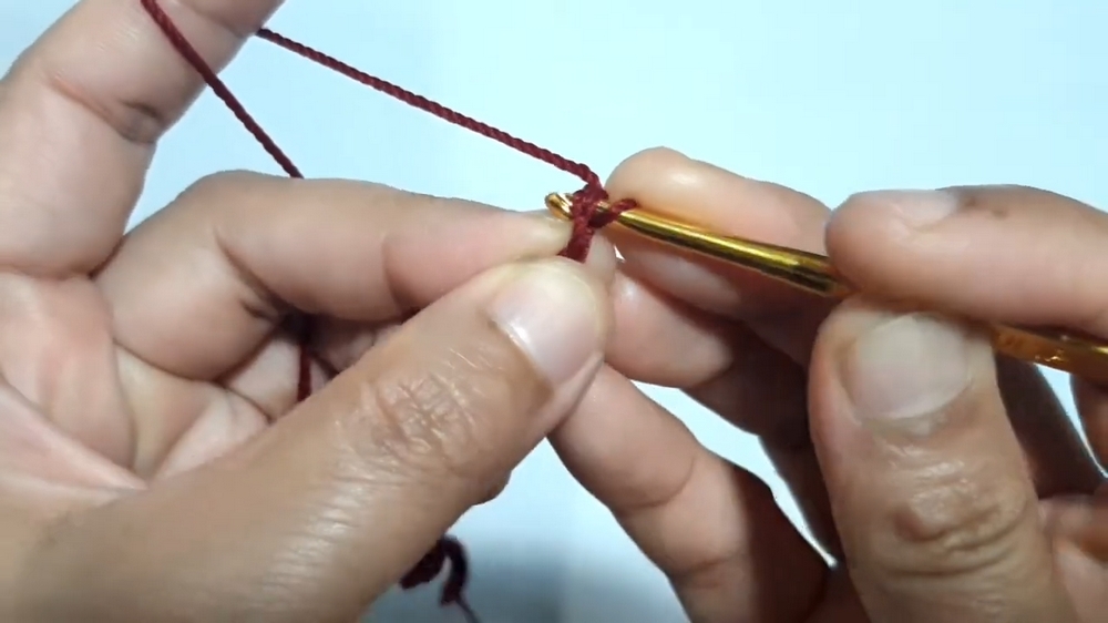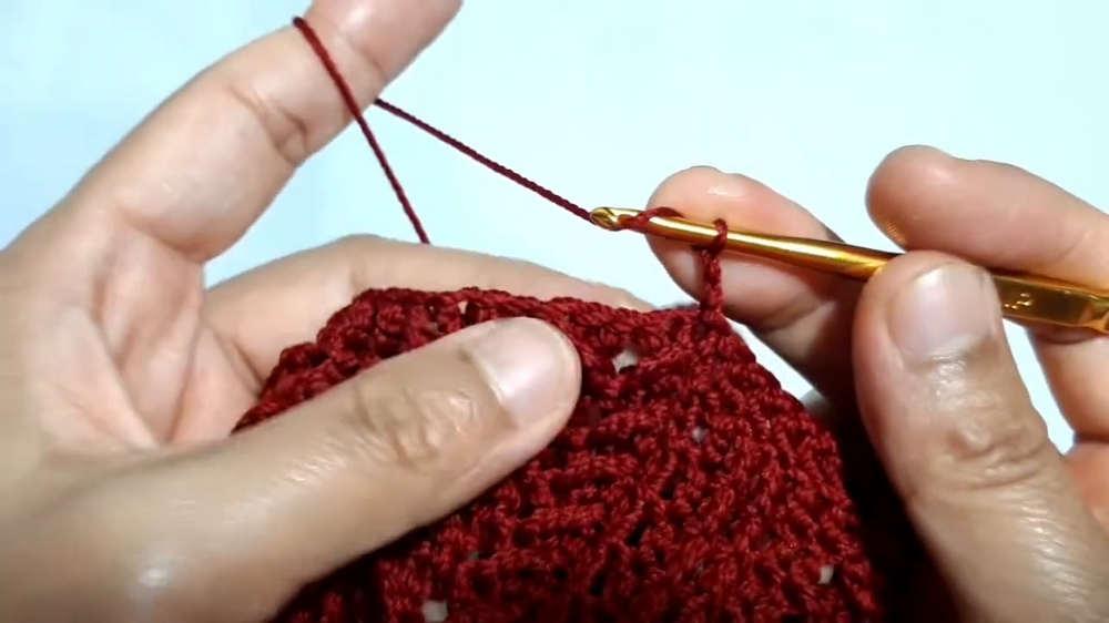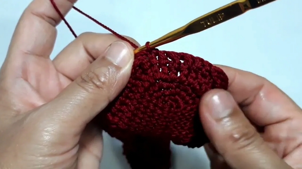 - Remove the stitch marker, make a slip stitch, and chain one to start the next round.