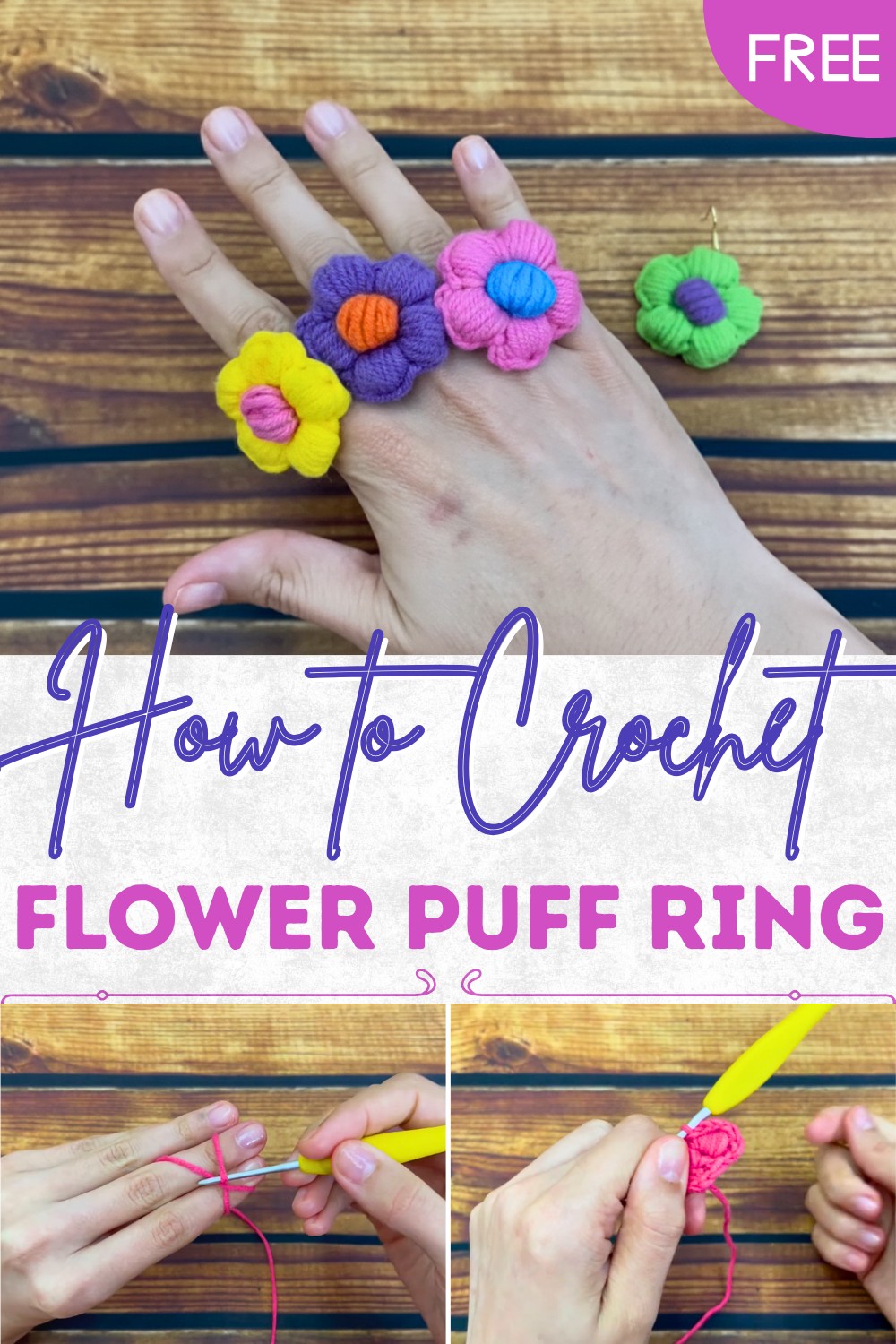 Charming Crochet Flower Puff Ring Pattern for ring lovers