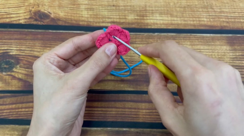 - Insert hook back into the same ch-1 space, sl st to join (anchors the petal).