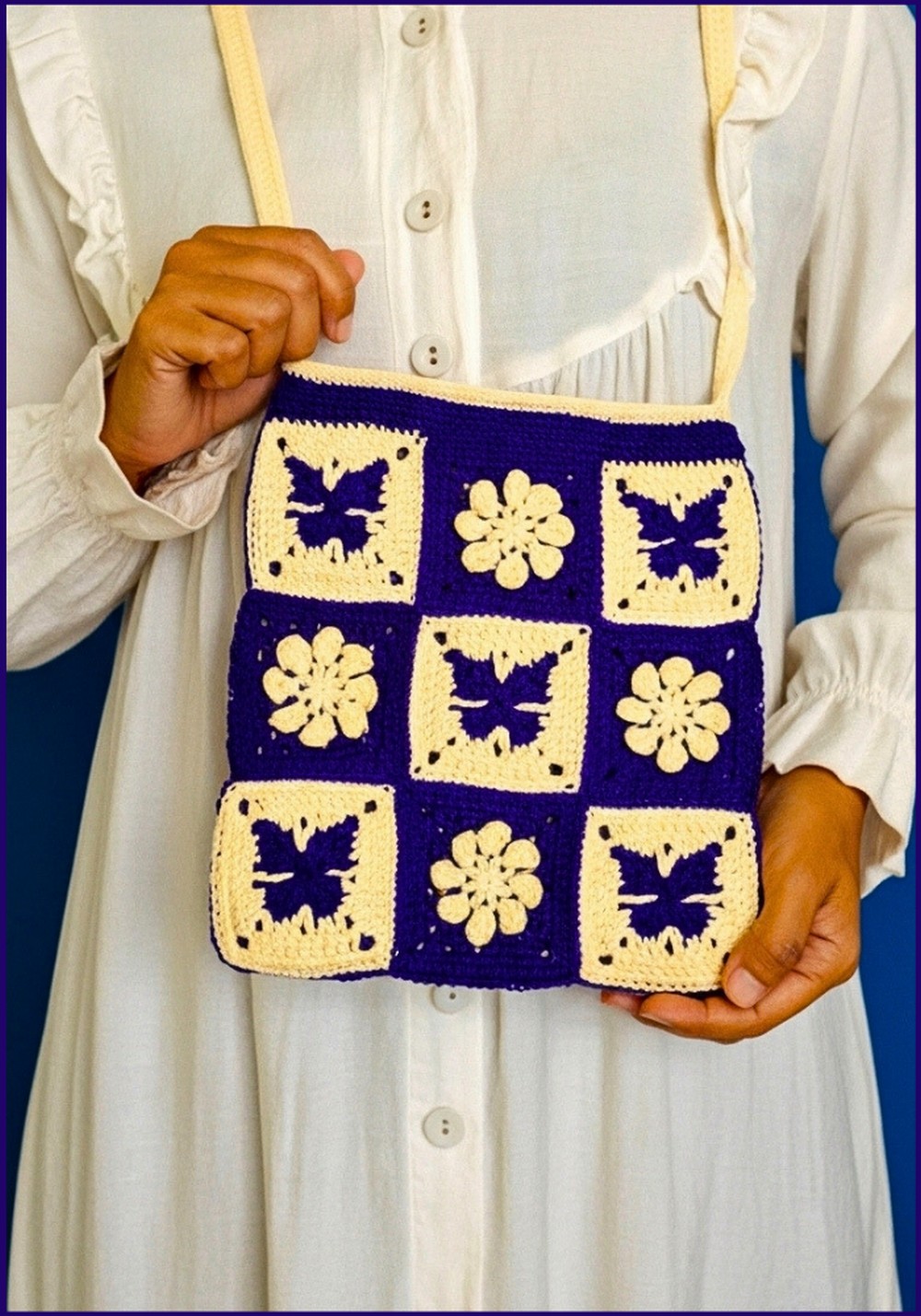 This pattern is not only functional but also eco-conscious, as it allows the use of leftover yarn or recycled materials. Its uses range from carrying daily essentials to being a stylish statement piece for casual outings or gifting.