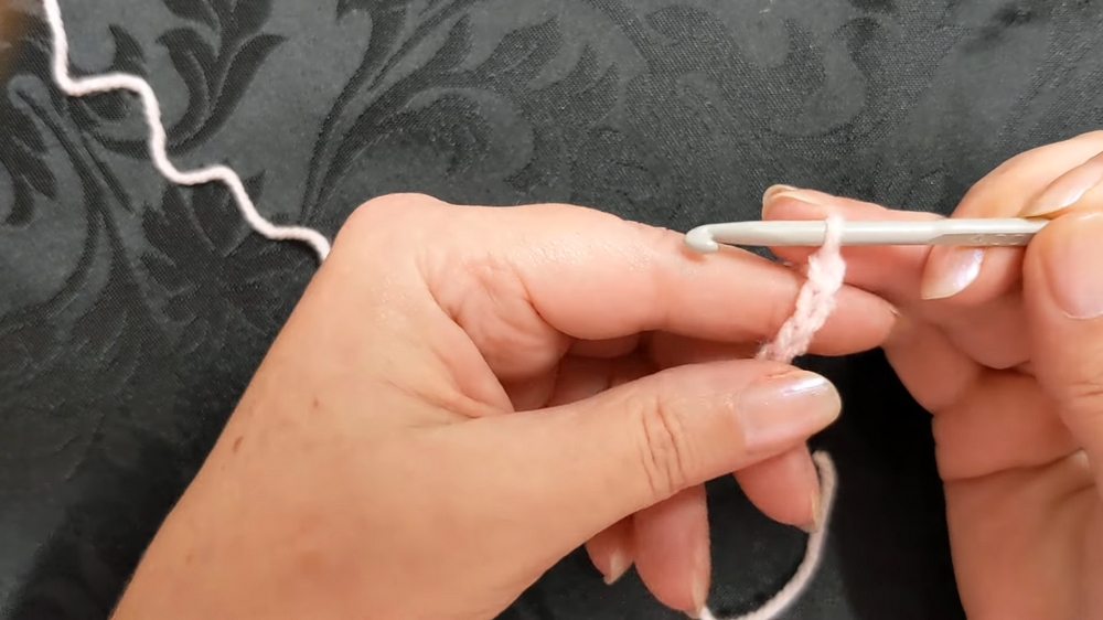 - Start with a long yarn tail about the length of your crochet hook (for sewing later).