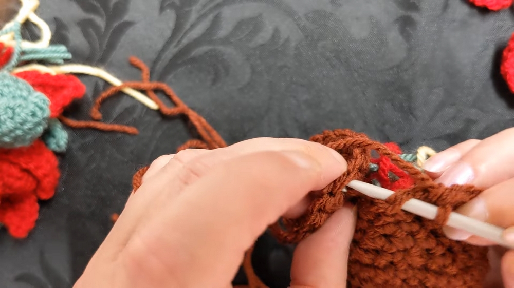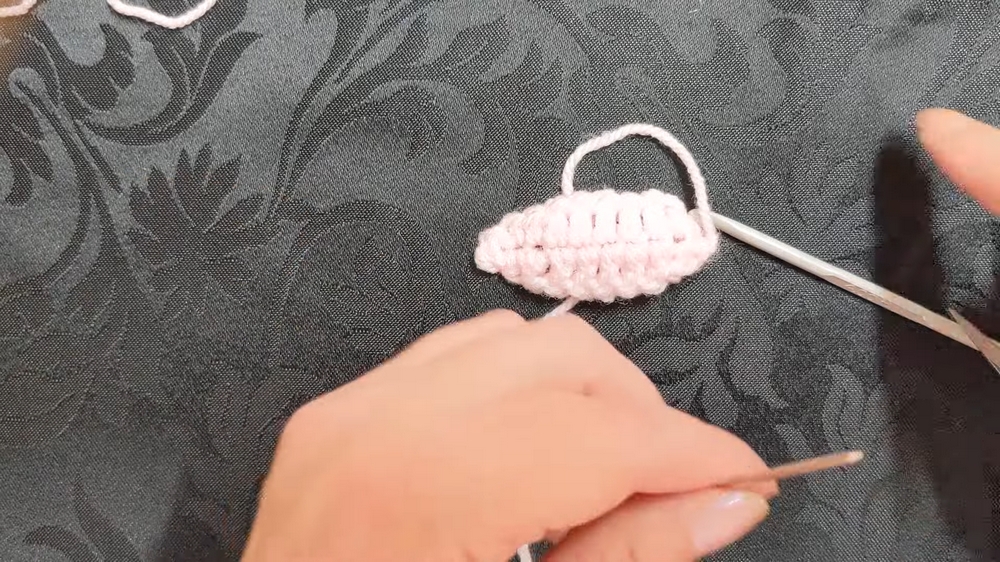 - Work 5 Double Crochets (US) / 5 Treble Crochets (UK) in the next stitches to create the curve of the leaf.