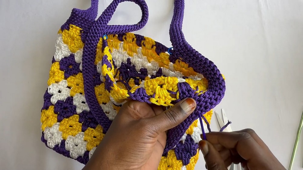 Focus on the Flower Formation: Always ensure the four-cluster “flower” formations are maintained throughout the body of the bag. This is the hallmark of the granny cluster design, and achieving this will make your bag look polished and professional!