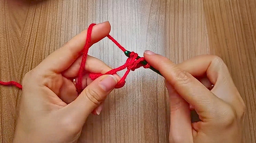Step 1: Start with the Main Body of the Hat (Red Yarn)
