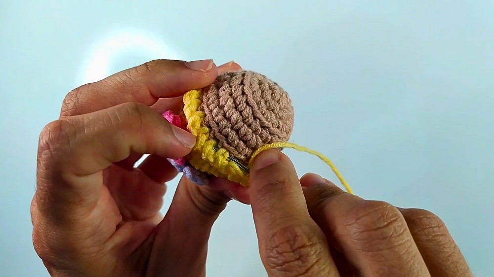 - Step 7: Use a different yarn color for the top. Begin with 6 single crochets inside a magic ring.