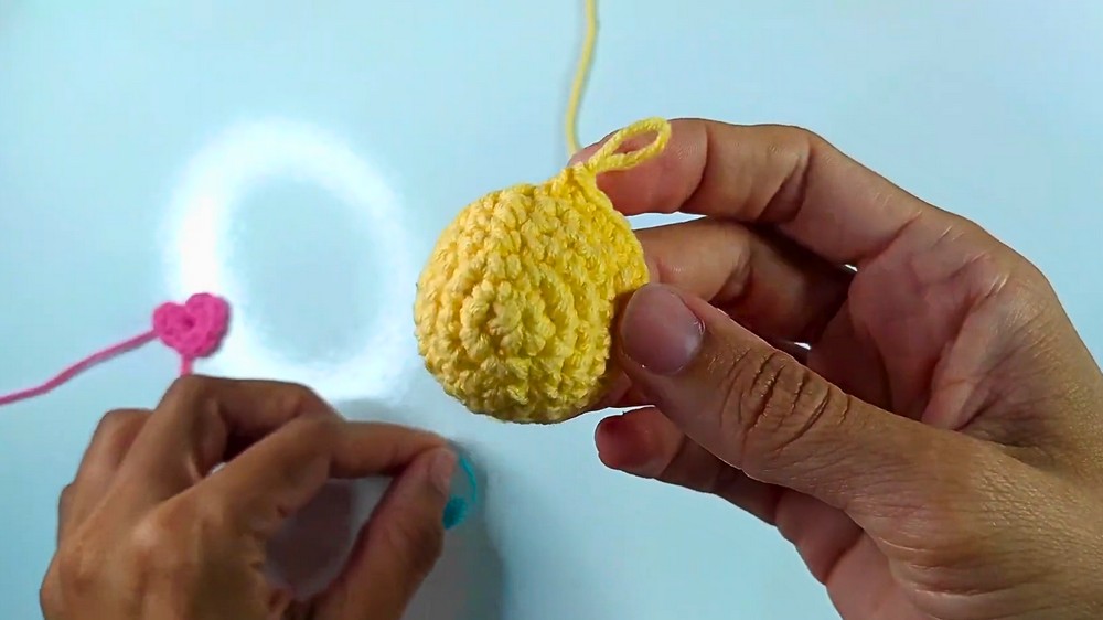 - Step 11: To create heart decorations, start with a magic ring and make 2 chains. Follow with 2 half points (insert needle, loop yarn, and pull through 3 loops together).
