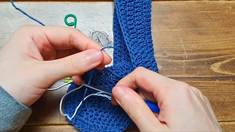 Decorative elements like textured stitches or playful color changes can be added during the central portion of the bag to give it a one-of-a-kind flair.