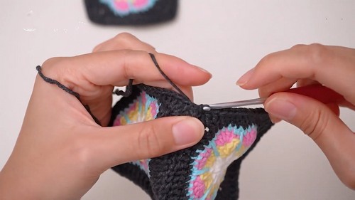 - Return to the first square, insert the hook into the next stitch, and make a slip stitch.