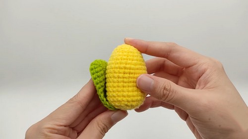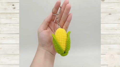 Congratulations, you’ve finished your crochet corn keychain! Enjoy your cute creation!