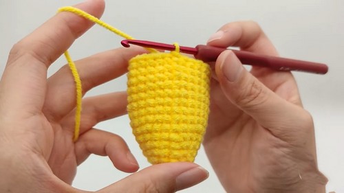 - Make 1 SC in each stitch (20 stitches total in each row).