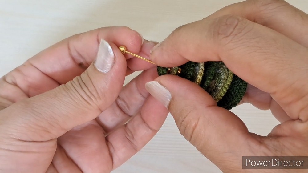 Finally, secure the earring hooks using a jump ring at the top of the tree, ensuring they are tightly fastened.