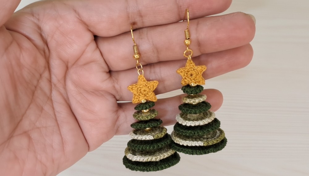 Crochet Christmas Tree Earrings Pattern to Shine This Season