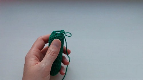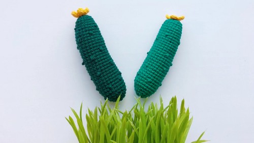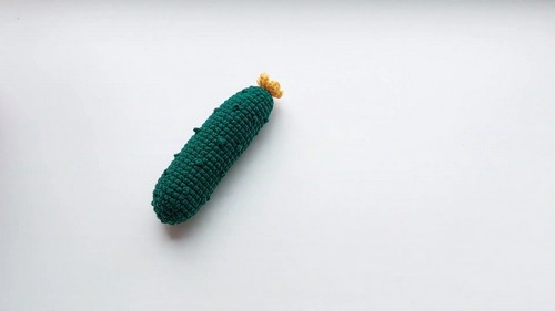 - Use a yarn needle to weave in any loose ends at the top and bottom of the cucumber.