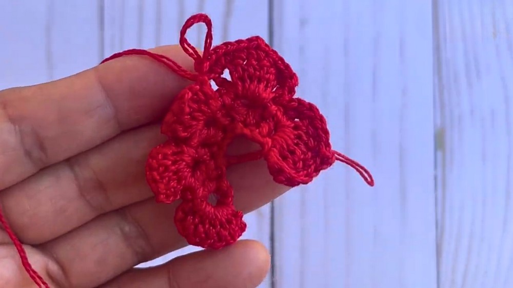 - Crochet 5 double crochets within the same space, chain three, and close the petal with a slip stitch.
