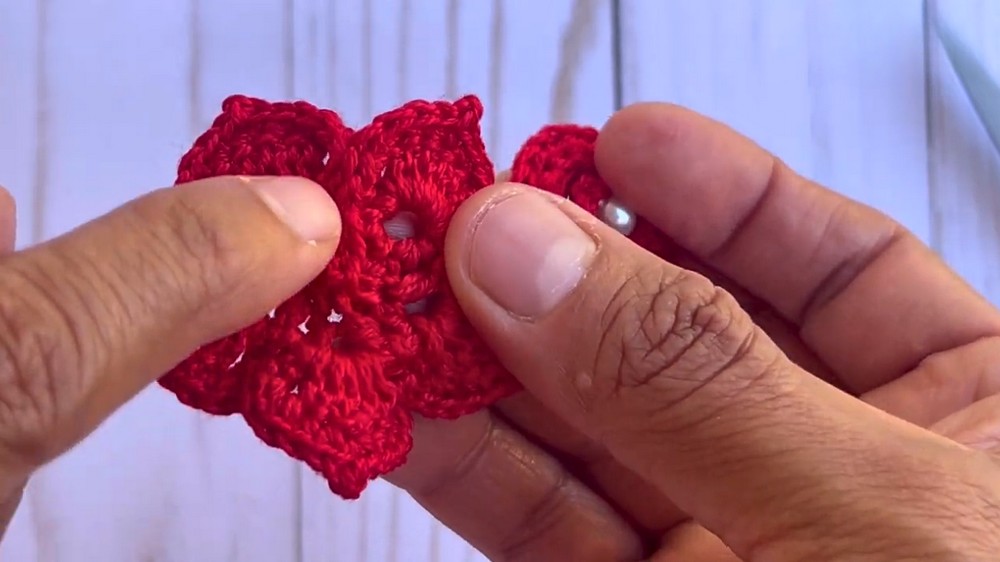 - Join the petals together stitch by stitch using a needle to close the flower design.