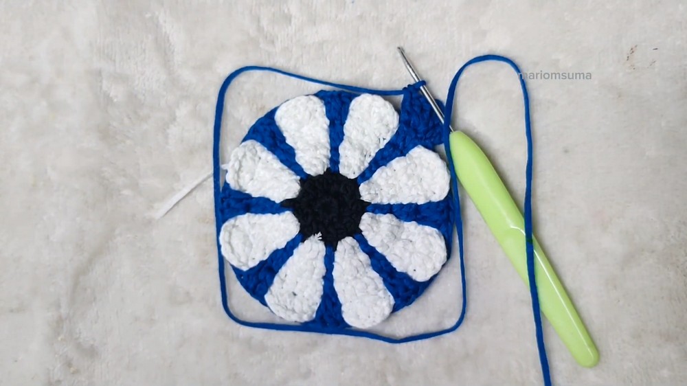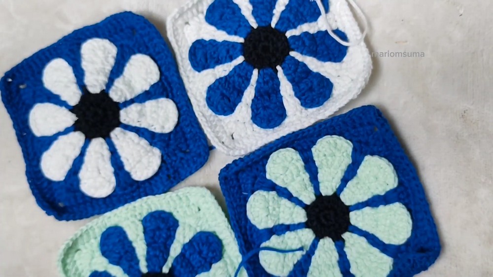 The process begins with forming individual squares using chain stitches as the foundation. From there, puff stitches are introduced, adding texture to the design while gradually working through rounds to shape and expand each square.