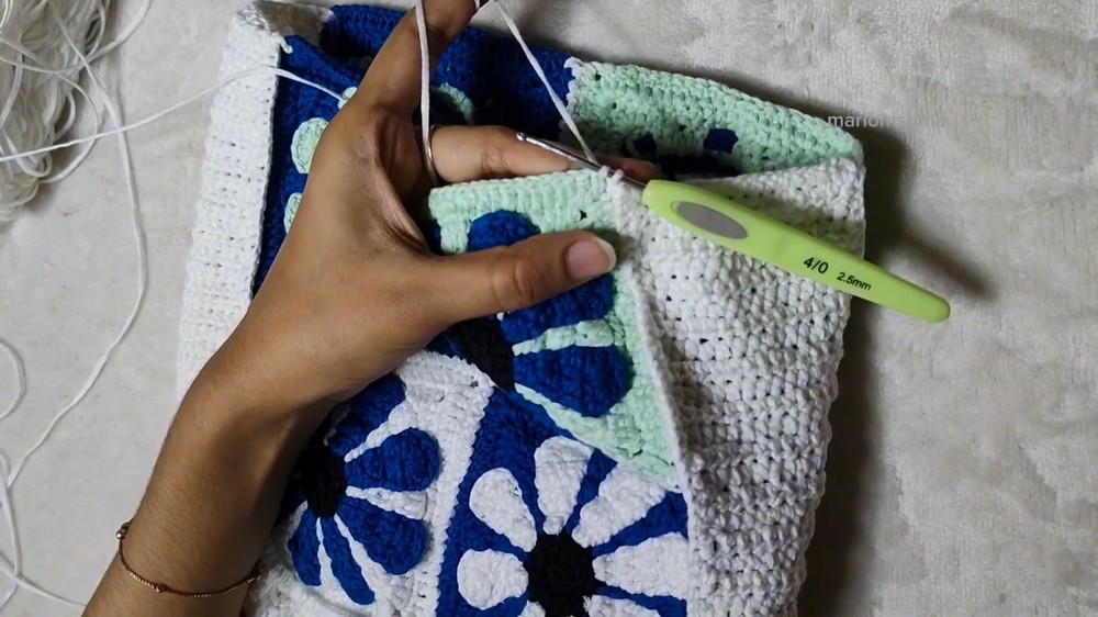 After completing the collection of squares, they are connected using slip stitches or whip stitching techniques, resulting in sturdy joins and a refined finish.