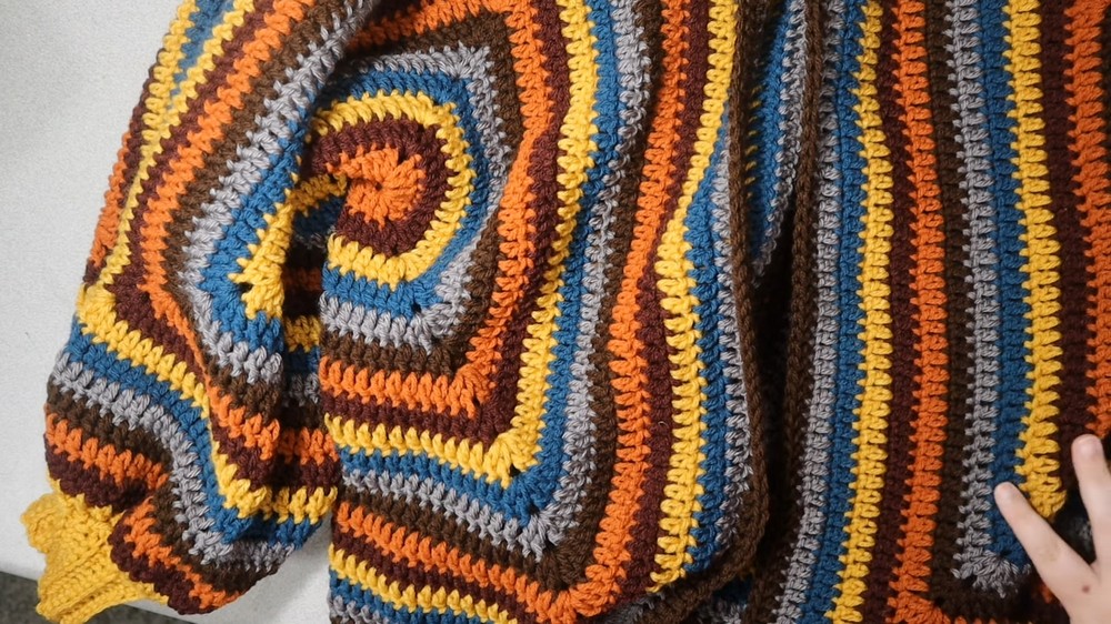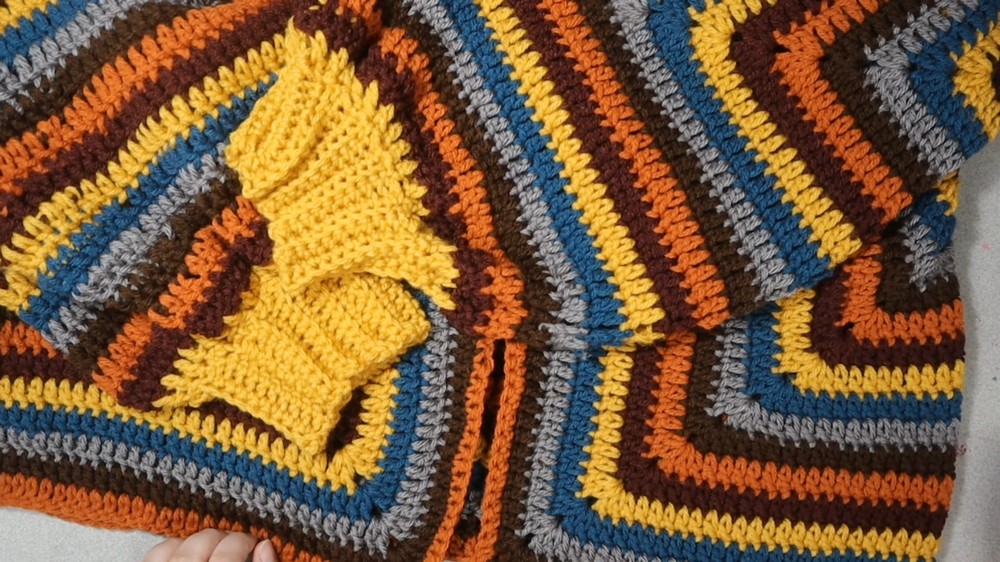 - Turn cardigan inside out so seam is hidden. Weave in all ends.