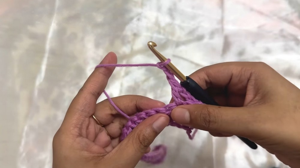 - Row 1 (Double Crochet): Skip the first 3 chains and place a double crochet (DC) into the 4th chain. Continue making DCs into each chain across.