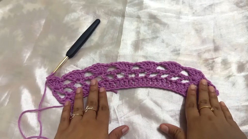 - Foundation: Use two shades of lavender (deep and light) with a 5 mm crochet hook. Begin with a slip knot and chain the appropriate number for your size (Small: Chain 33).