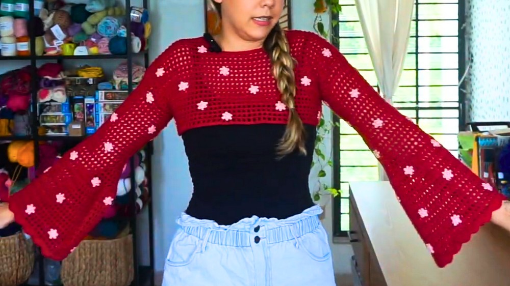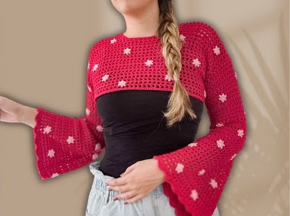 Crochet Mesh Bell Sleeve Crop Top Pattern for Flattering Looks