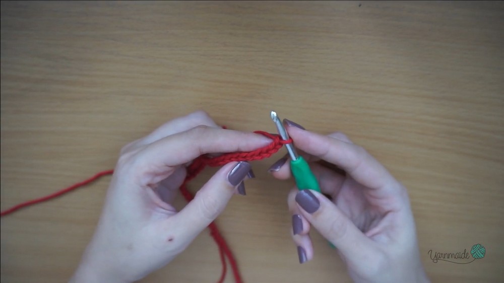 - Skip five chains (counts as a double crochet and chain space), and start making double crochets with chain-1 gaps.
