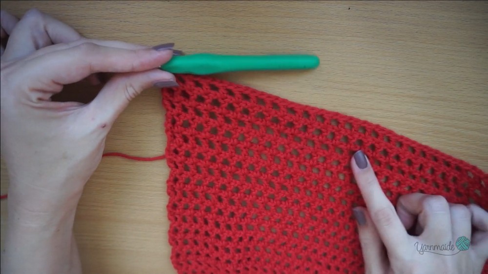 - Repeat this for around 4 rows total to achieve the desired neckline shape.