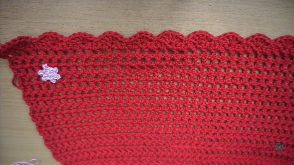 - Continue until you reach the end of the row for a beautiful scalloped finish.