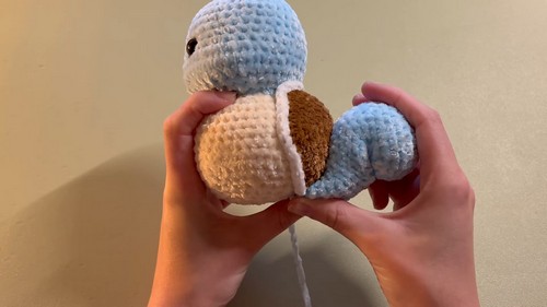 - Attach the tail to the lower back of the body, close to where the shell meets the body.