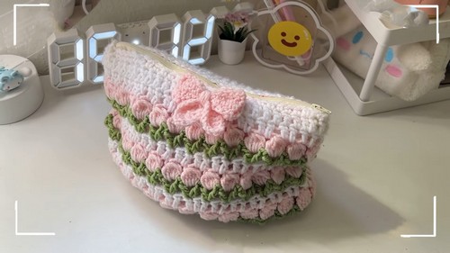 - The end product is a functional makeup or accessory bag with a beautiful tulip pattern, making it both practical and aesthetically pleasing.