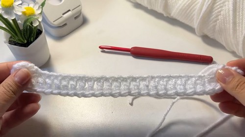 - Skip the first stitch, double crochet into the next stitch, chain 1, and double crochet again into the same stitch (to form a V-stitch).