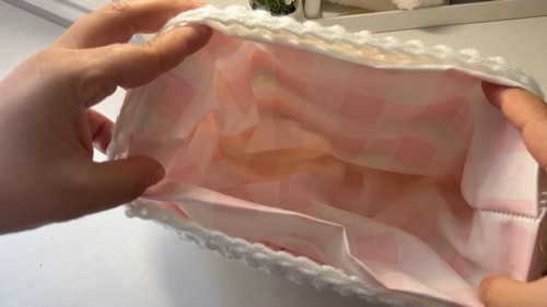 - Pin the fabric around the bag and sew the sides using the hand back stitch.