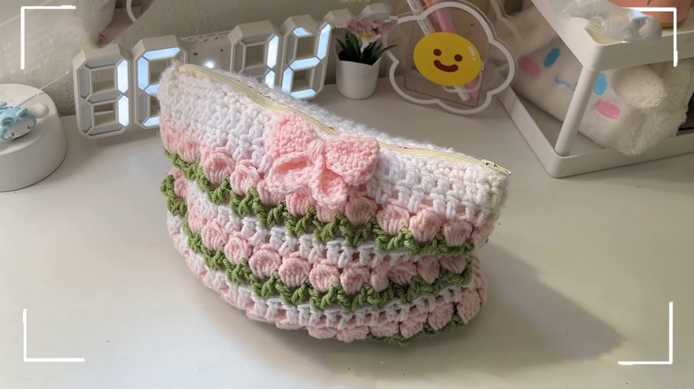 Crochet Tulip Makeup Bag Pattern For Spring Projects