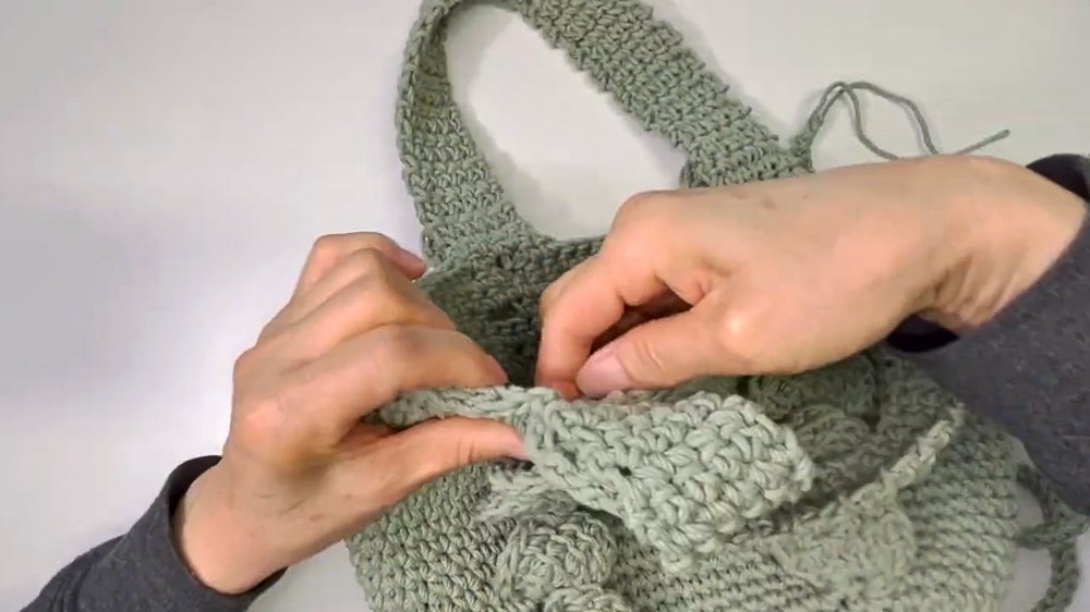 Once the flower details are complete, finishing the bag involves creating clean borders with reinforced edges, adding handles, and weaving in loose ends for a polished result.