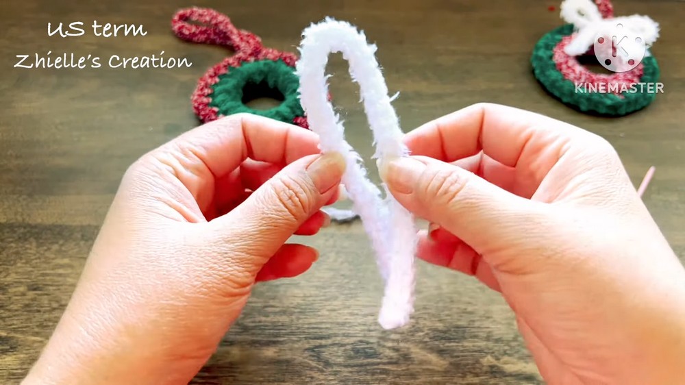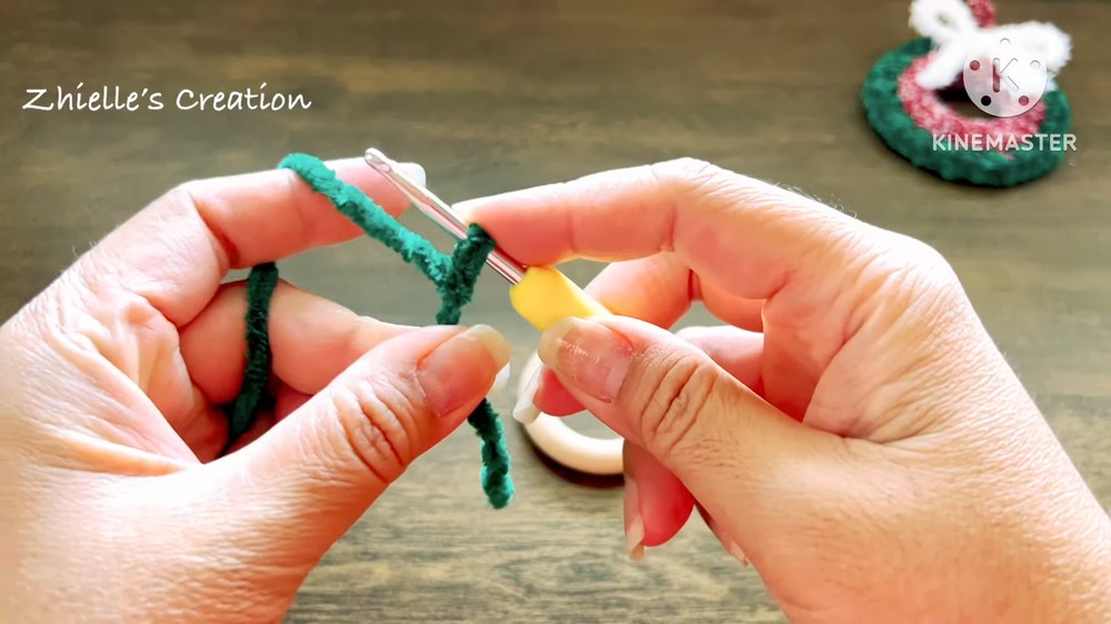 - Start by grabbing your 2-inch ring and your green chenille yarn.