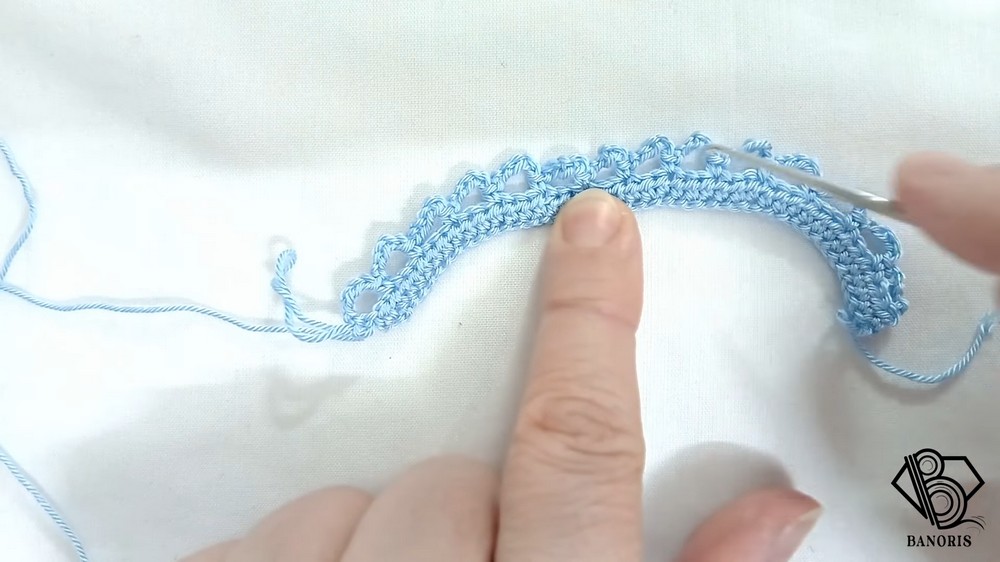- Turn your work around and focus on the hollow loops from the previous row.