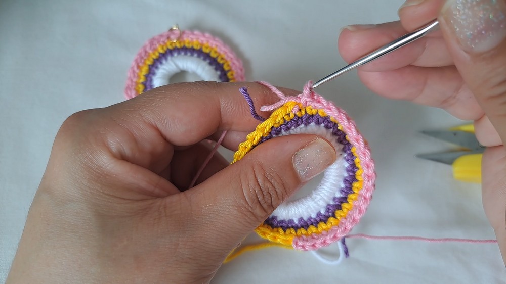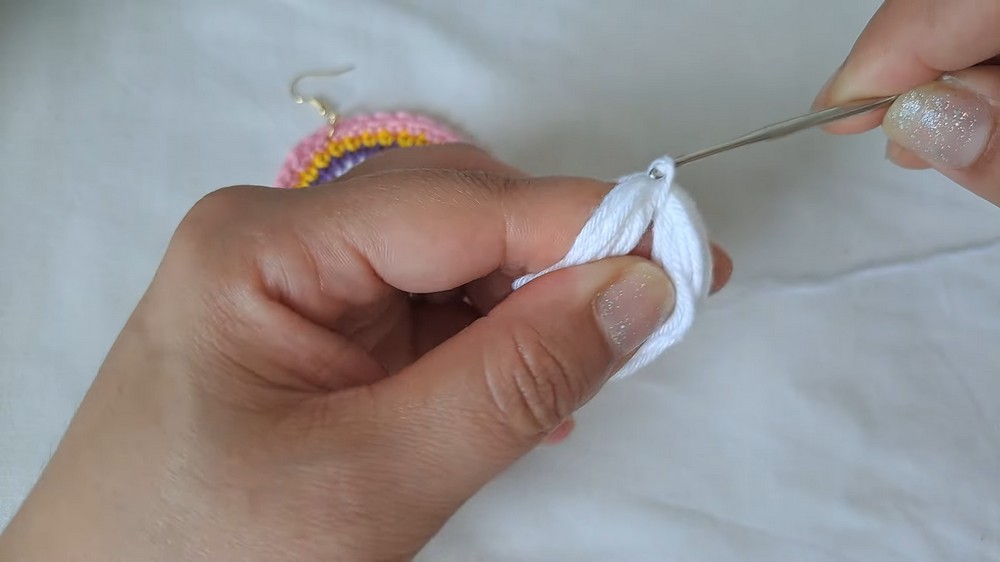 Beginning with fundamental stitches such as single crochet, double crochet, and chains, the process kicks off by creating a foundational chain or loop, which serves as the base for the earring’s design.