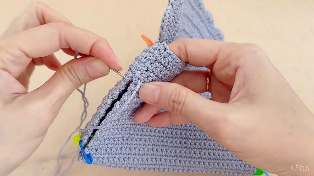 - Use a needle to sew the sections of the bag together: Sew the sides to the body and secure all seams carefully.