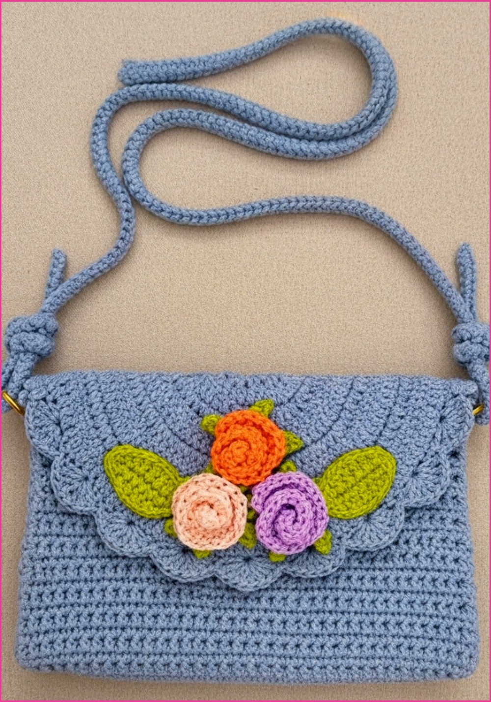This crochet crossbody bag is a wonderful project that combines simplicity with style. The decorative flowers and customizable design make the bag ideal for personal use, gifting, or even selling as a unique handmade accessory.