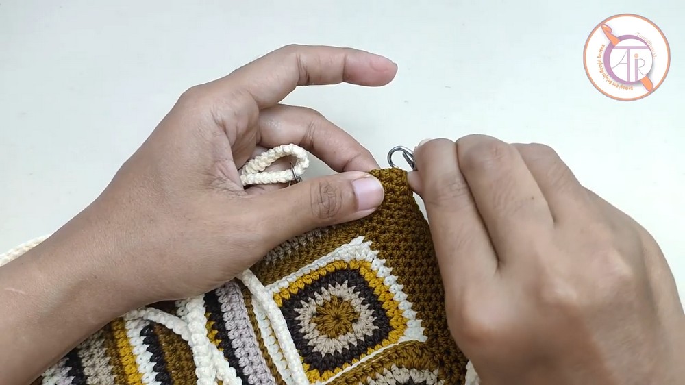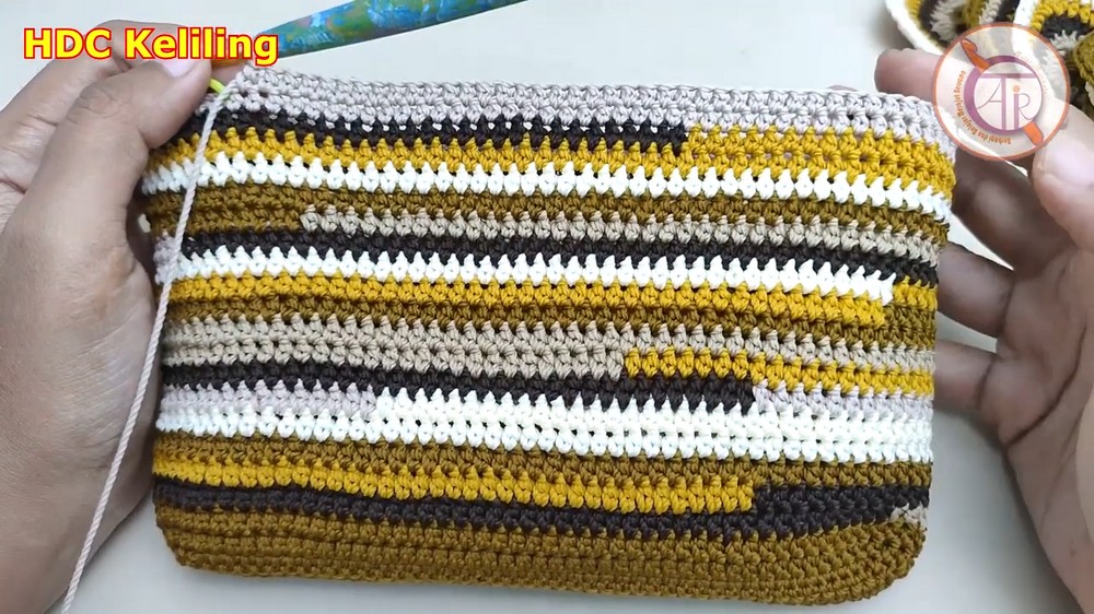 Moving into the body of the bag, follow a structured row-by-row approach, incorporating seamless color changes that give the pattern its distinctive look. The tutorial emphasizes keeping stitch tension consistent to achieve a neat and polished appearance.