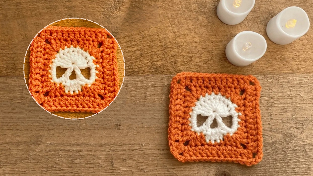 Edgy Crochet Skull Granny Square for Halloween Vibes