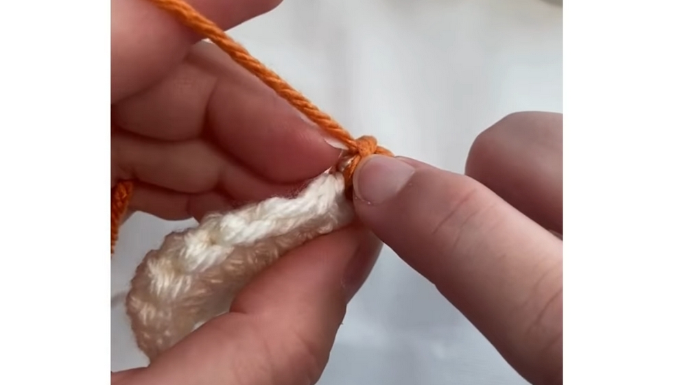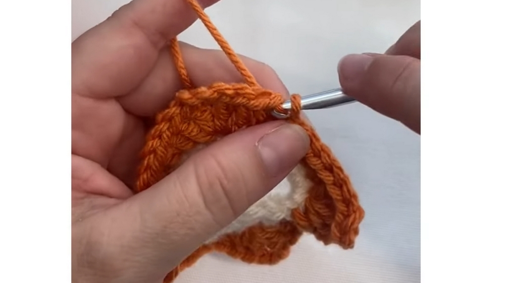- Slip stitch into the nose space, chain 2, and make 2 double crochets into the same space.