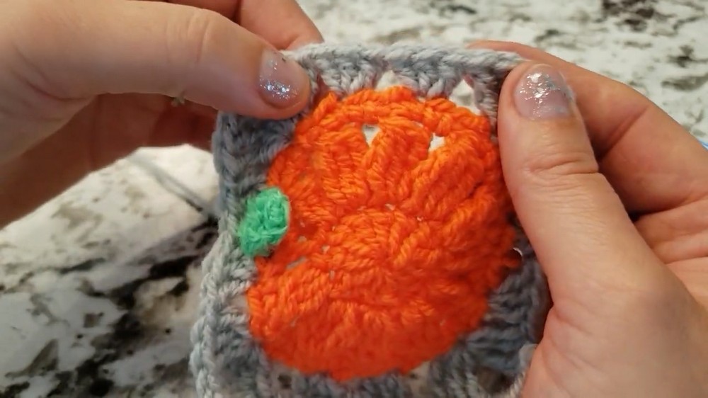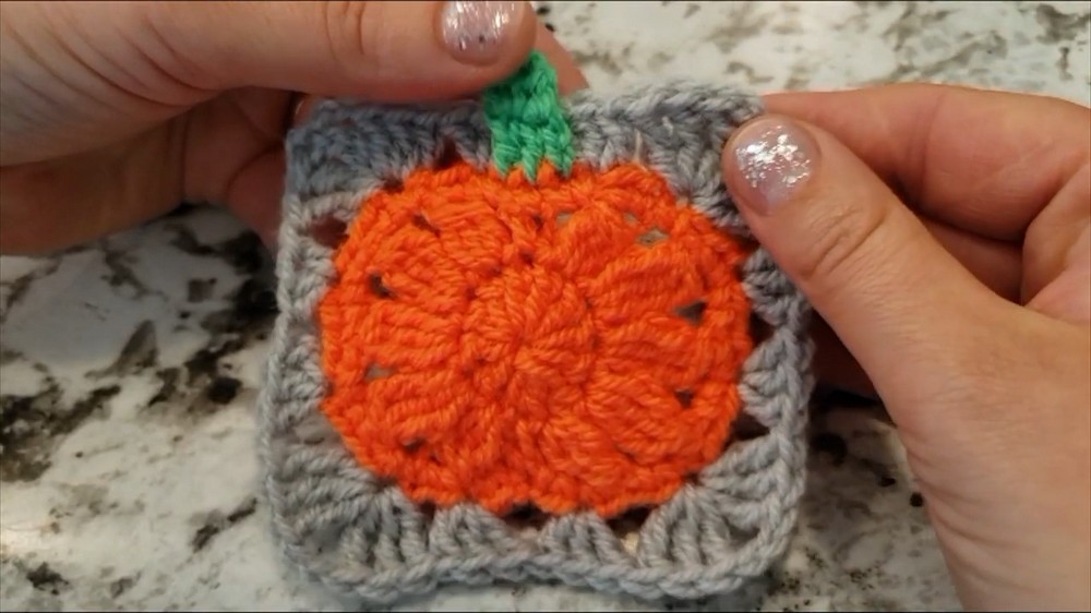 Work with High-Contrast Colors: When crocheting the pumpkin, use yarn colors that result in a clear distinction between the pumpkin, stem, and the square border. This enhances the overall design and structure.