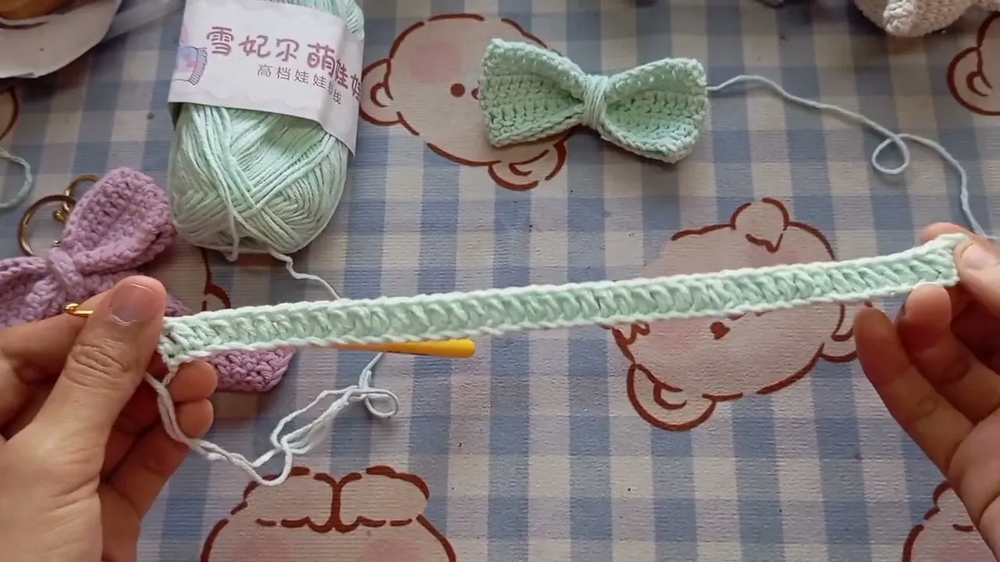- Start Small: Make a slip knot and chain 13 stitches. Wrap it around the bow to ensure the length fits snugly; adjust the chain length if necessary.
