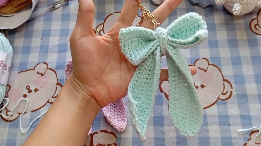 Its compact size ensures versatility, while the charm of its delicate loops and curves captures a sense of joy in the small things. Every stitch and fold conveys care and thoughtfulness, turning a functional item into a miniature statement of personality and style. This crochet bow keychain proves that even the smallest accessory can brighten daily life with charm, practicality, and subtle elegance.