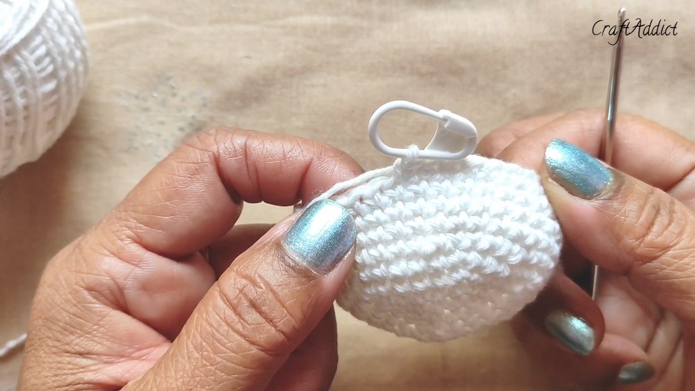 - Round 3: Work 1 SC in the first stitch and mark it with a stitch marker, followed by 2 SC in the next stitch (repeat). At the end, you will have 18 stitches.