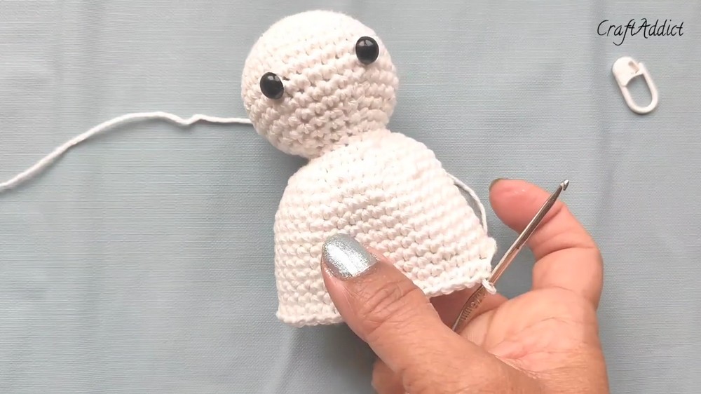 - Base: Using the remaining yarn from the head, start the body with 12 SC stitches from the final round.