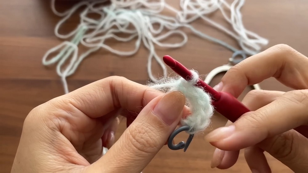 - Work 6 sc into MR.
