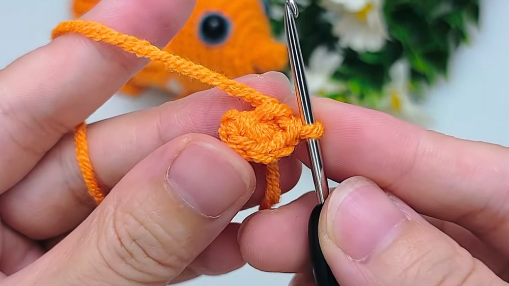 - Begin with a chain stitch followed by 5 short stitches to form the base.